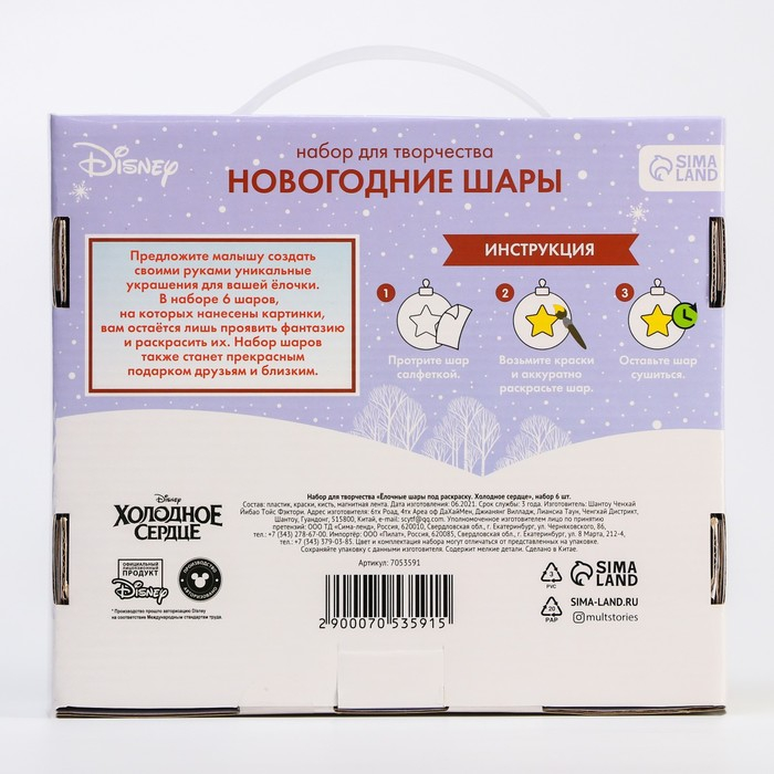 Набор для творчества на Новый год "Новогодний шар под раскраску", 6 штук 5.5 см, Холодное сердце
