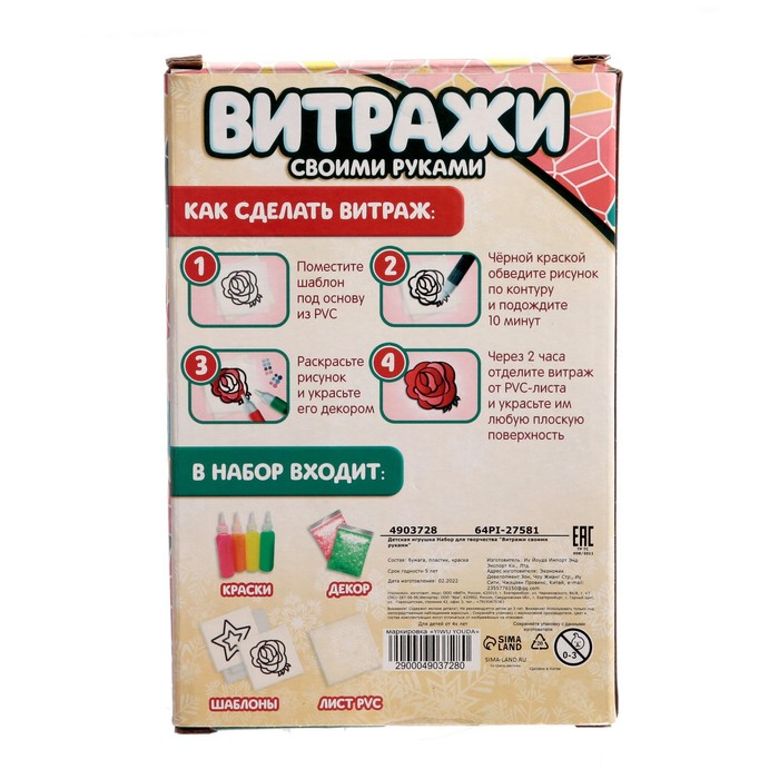 В серии наборов для творчества «Раскрась витражики» представлено 7 видов наборов.