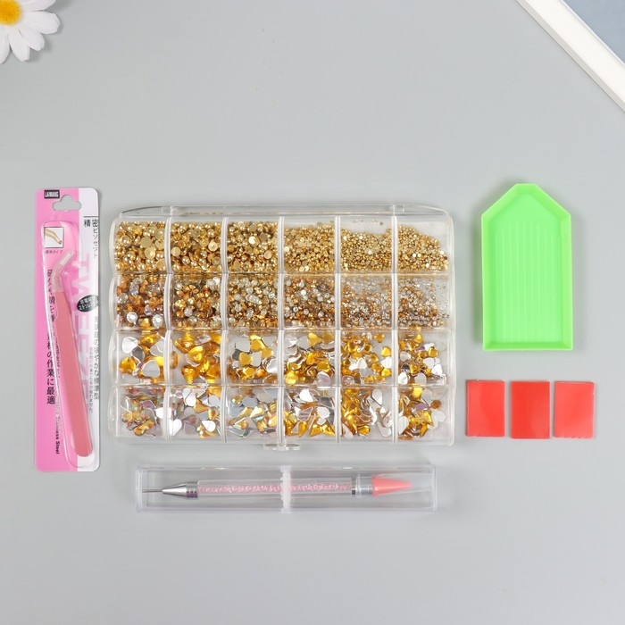 Набор для творчества "Золотой" набор 24 вида, инструмент, пинцет, подставка, мат 2,5х12х18см 74595
