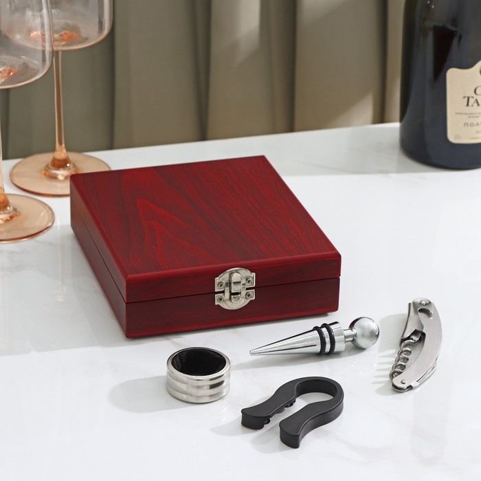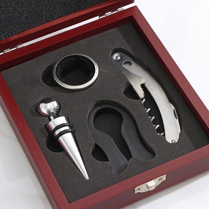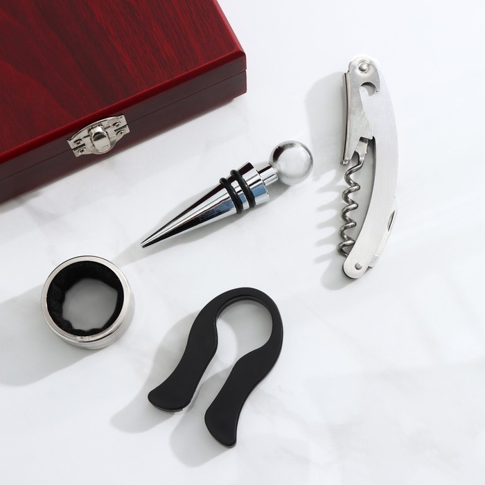 Набор для вина Доляна «Президент», 4 предмета: открывашка, пробка, кольцо, резец для фольги