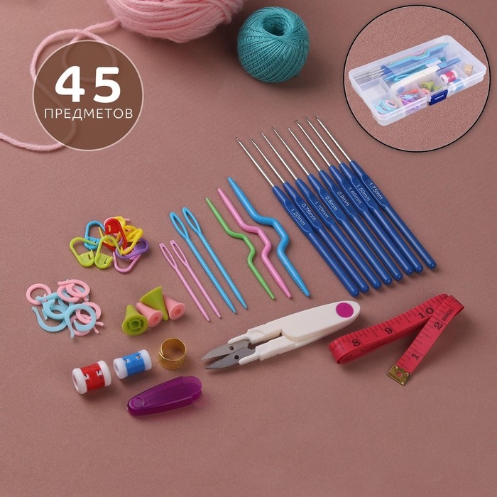 Набор для вязания всегда пригодится в хозяйстве, ведь он содержит самые необходимые принадлежности для рукоделия.