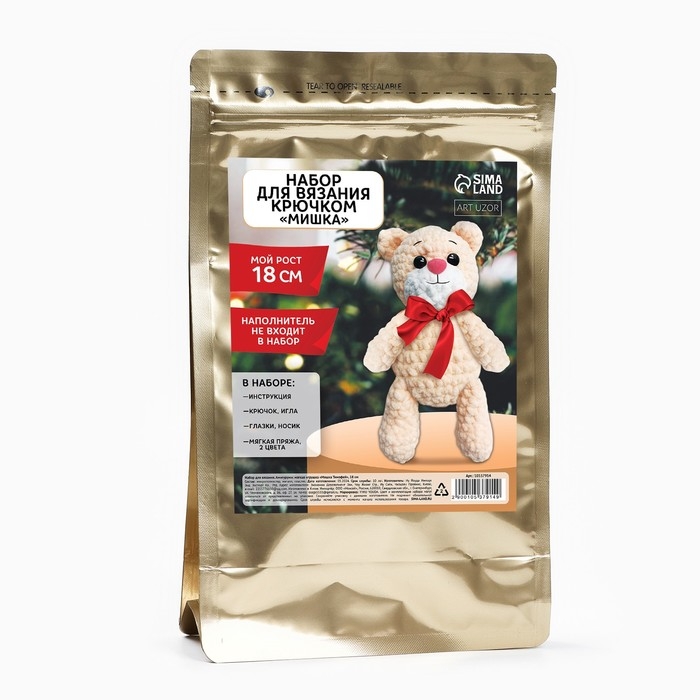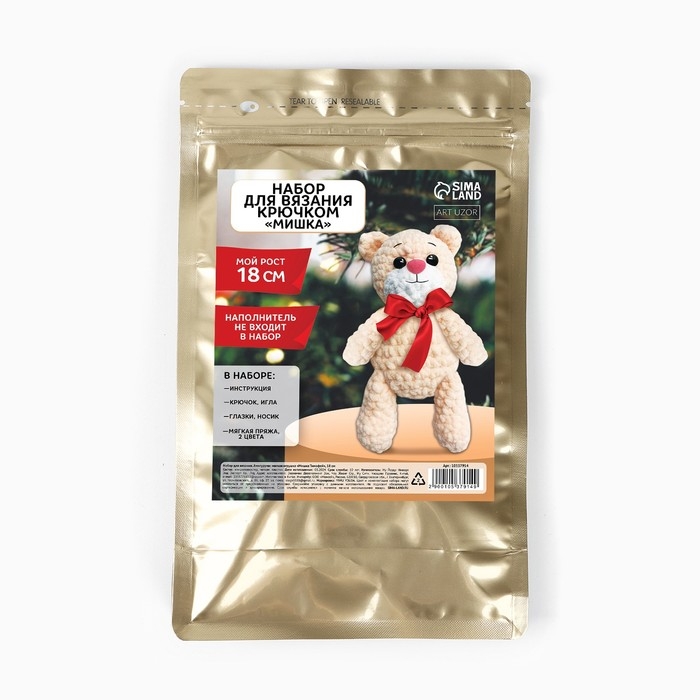 Набор для вязания крючком. Амигуруми: мягкая игрушка своими руками «Мишка Тимофей», 18 см
