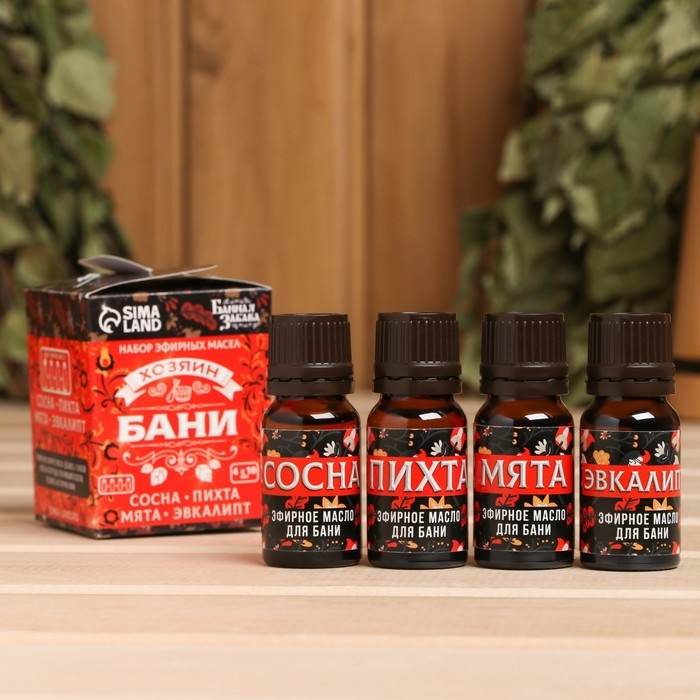Набор эфирных масел 10 мл "Хозяин бани" сосна, пихта, мята эвкалипт
