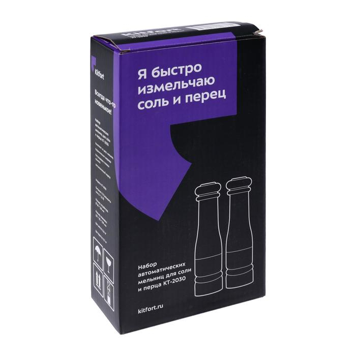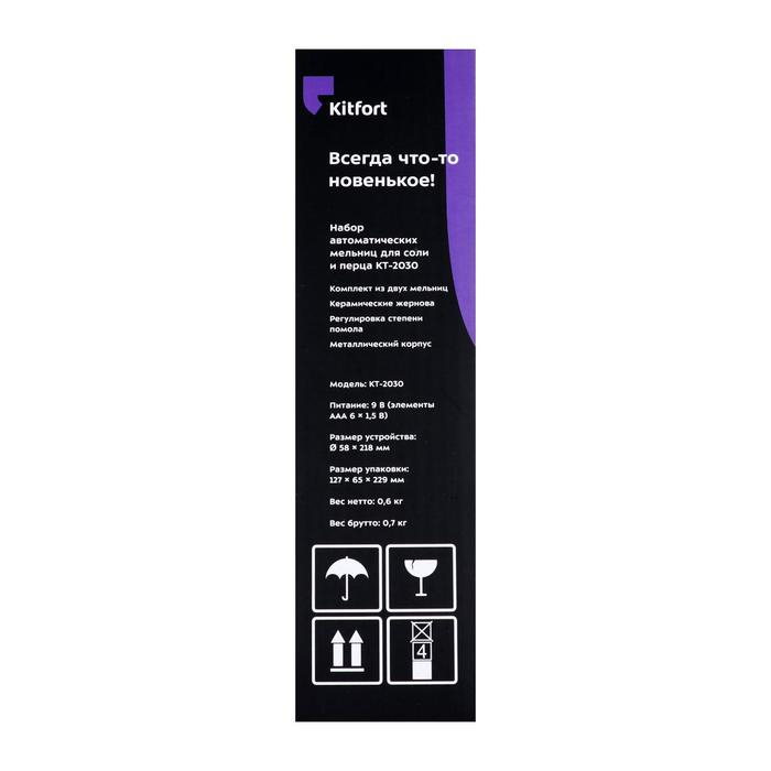 Набор электрических мельниц Kitfort KT-2030, 2 шт, подсветка, 6хААА, серебристый