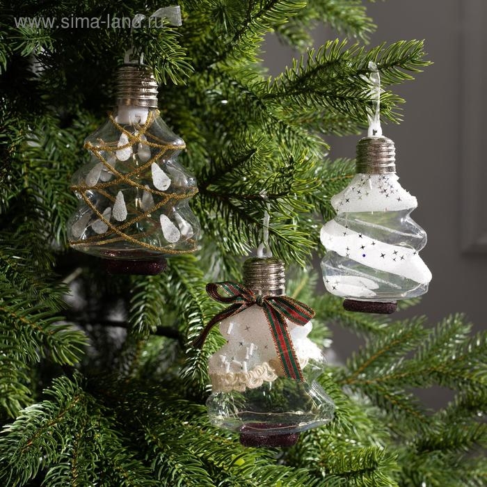 Набор ёлочных шаров «Ёлочки белые» 3 шт., батарейки, 5 LED, свечение белое