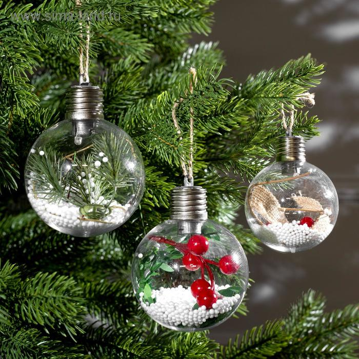 Набор ёлочных шаров «Зимний лес» 3 шт., батарейки, 1 LED, свечение тёплое белое