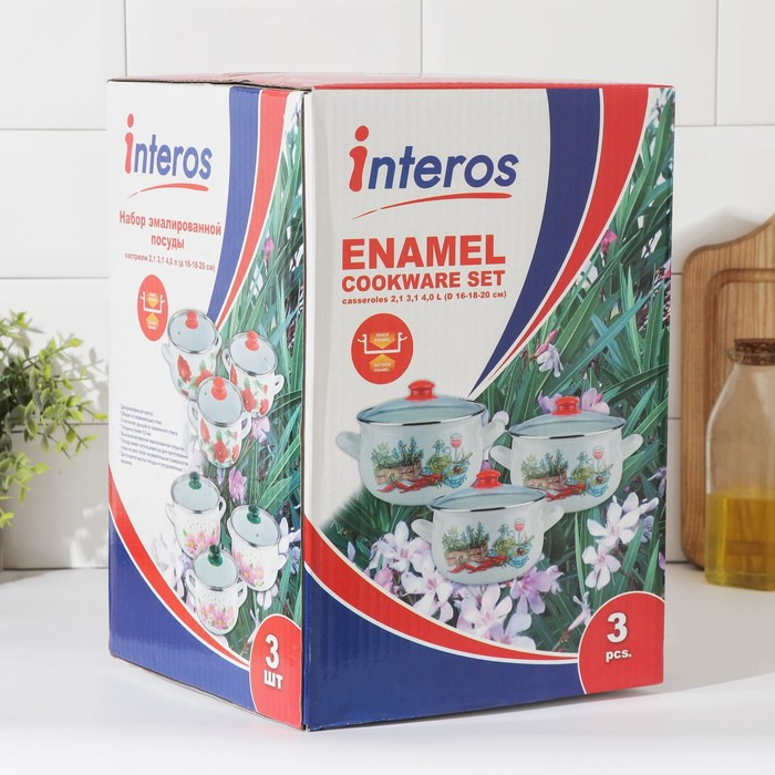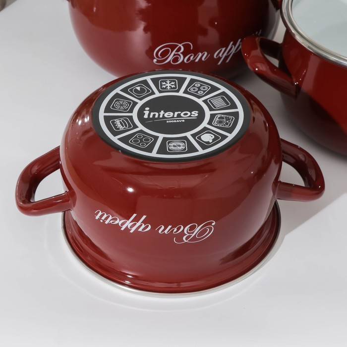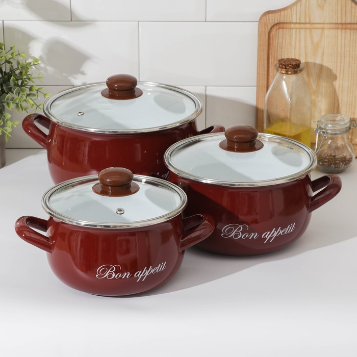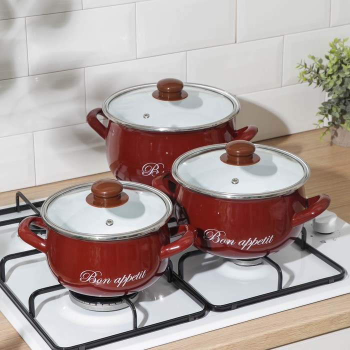 Набор эмалированных кастрюль «Бордо», 3 предмета: 2,1 л, 3,1 л, 4 л, индукция, цвет бордовый
