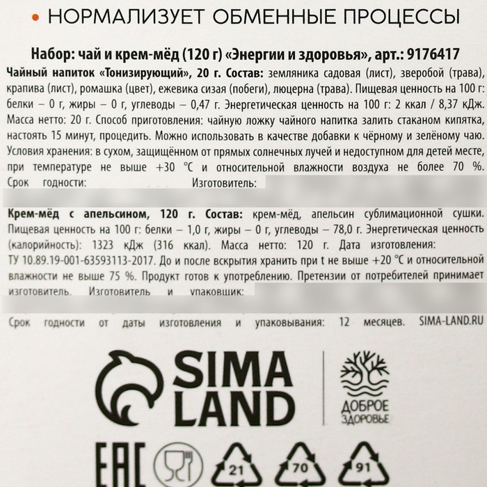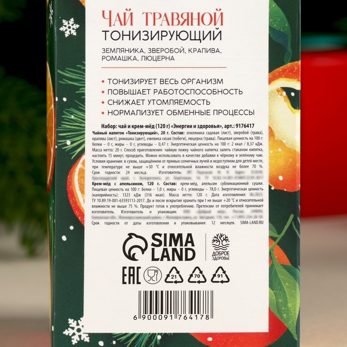 Набор «Энергии и здоровья»: травяной чай 20 г. и крем-мед 120 г.