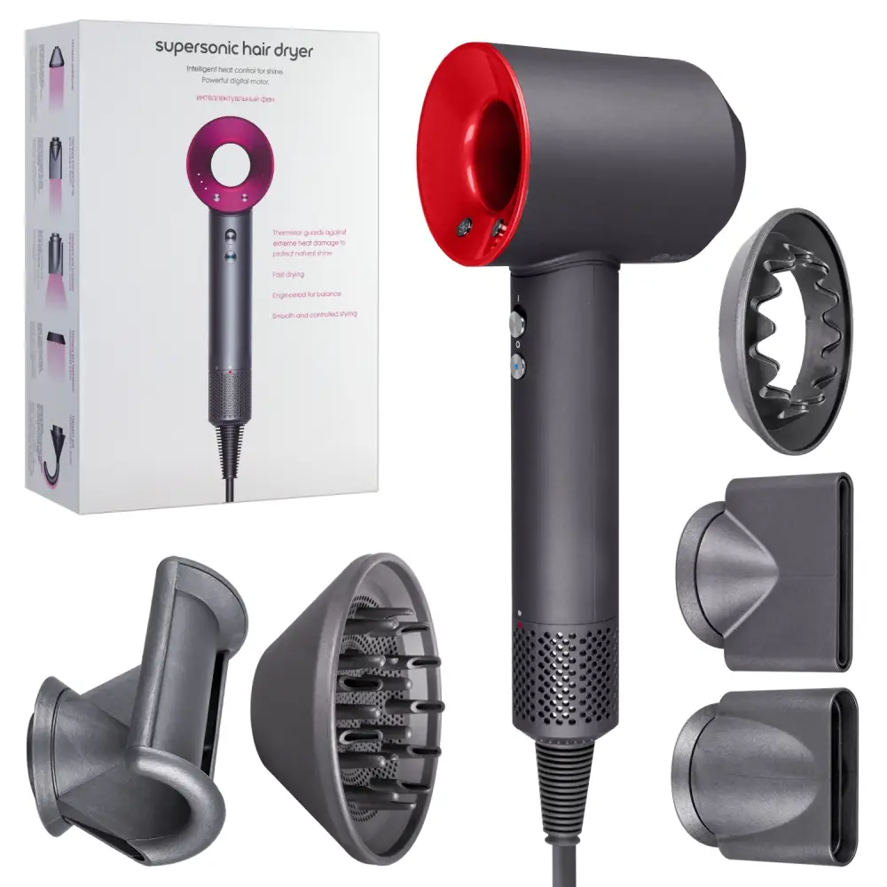 Набор фен supersonic Серый с красным (6 в 1) 1.8м