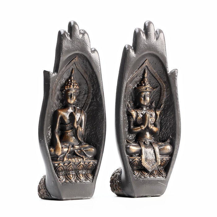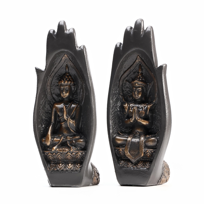 Набор фигур "Будда в руках" серая-бронза, 21см