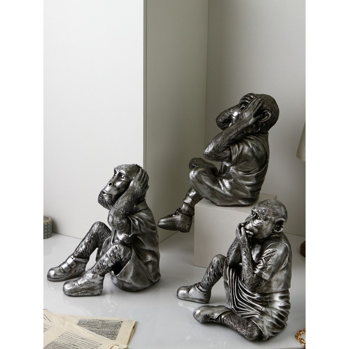 Набор фигур «Люди. Не вижу, не слышу, не говорю», полистоун, 38 см, цвет серебро