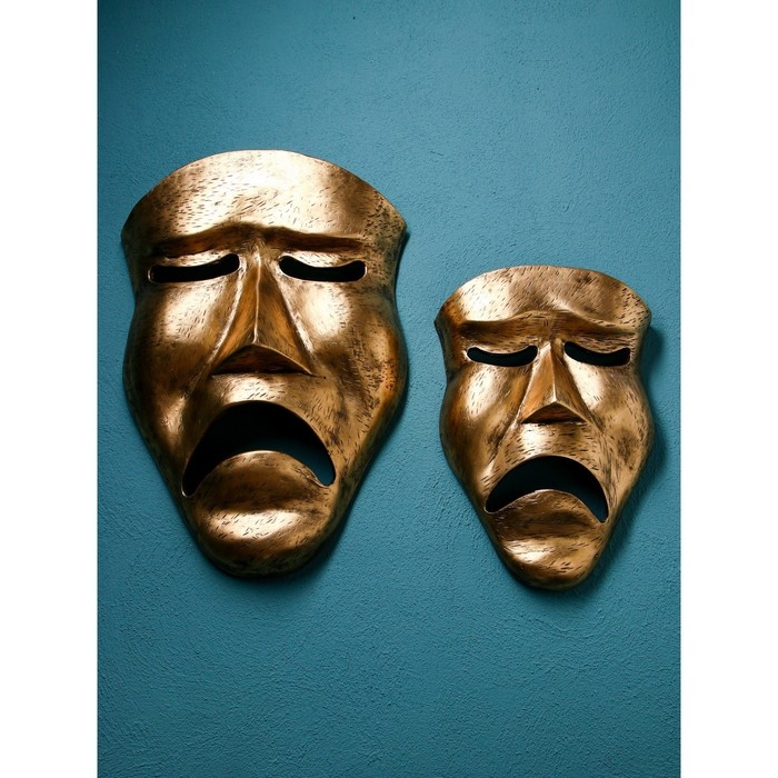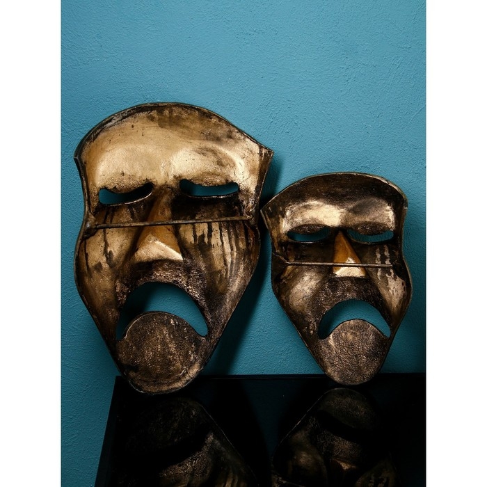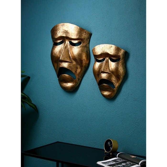 Набор фигур «Маска грустная», полистоун, 60 см, 2 шт, цвет золото