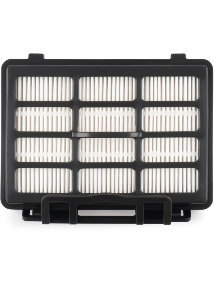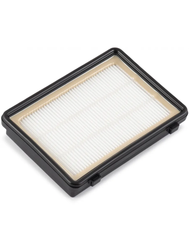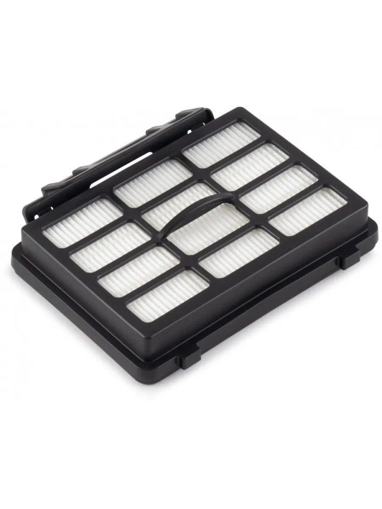 Внешний HEPA-фильтр тонкой очистки изготовлен из волокнистого материала, который упакован в пластиковый корпус. Он способен улавливать мельчайшие частицы размером от 0,3 микрона, включая пыль, аллергены и другие вредные вещества. Благодаря этому, пылесос удерживает их внутри, что способствует созданию здоровой микрофлоры в помещении.