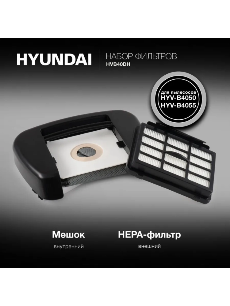 Фильтры Hyundai HVB40DH — незаменимые аксессуары для обеспечения эффективной работы пылесосов HYUNDAI HYV-B4050 и HYV-B4055. Представляют собой систему очистки, которая помогает поддерживать чистоту в доме и заботиться о здоровье его обитателей.