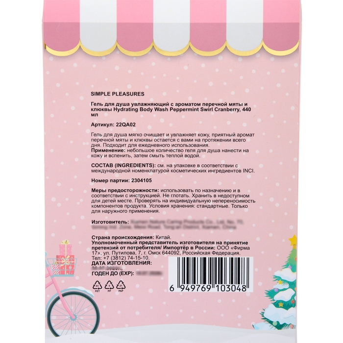 Набор гелей для душа Simple Pleasures, аромат перечной мяты и клюквы подходит для всех типов кожи, включая чувствительную. Он безопасен для здоровья и не вызывает аллергических реакций.
