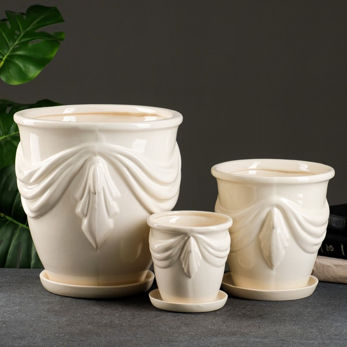 Набор горшков 3шт. "Уют" белый: 10л, 3,2л, 1л