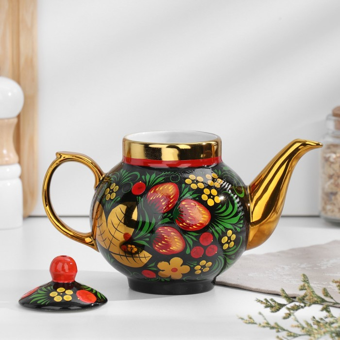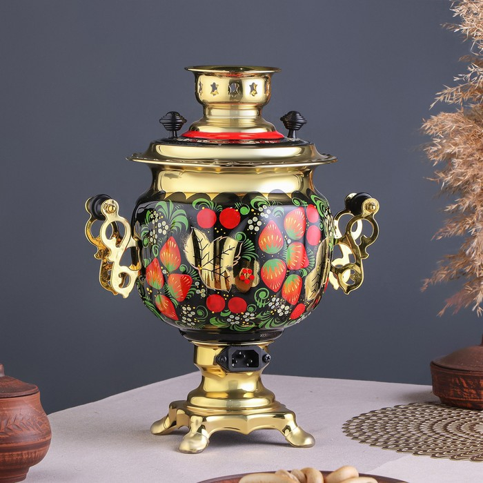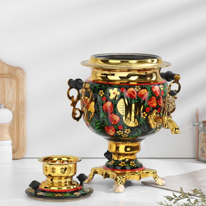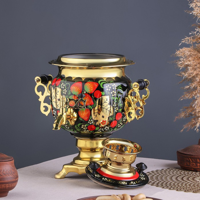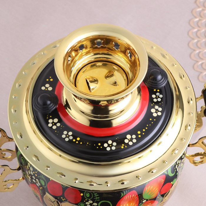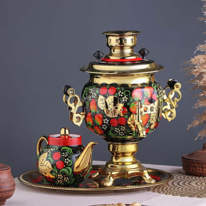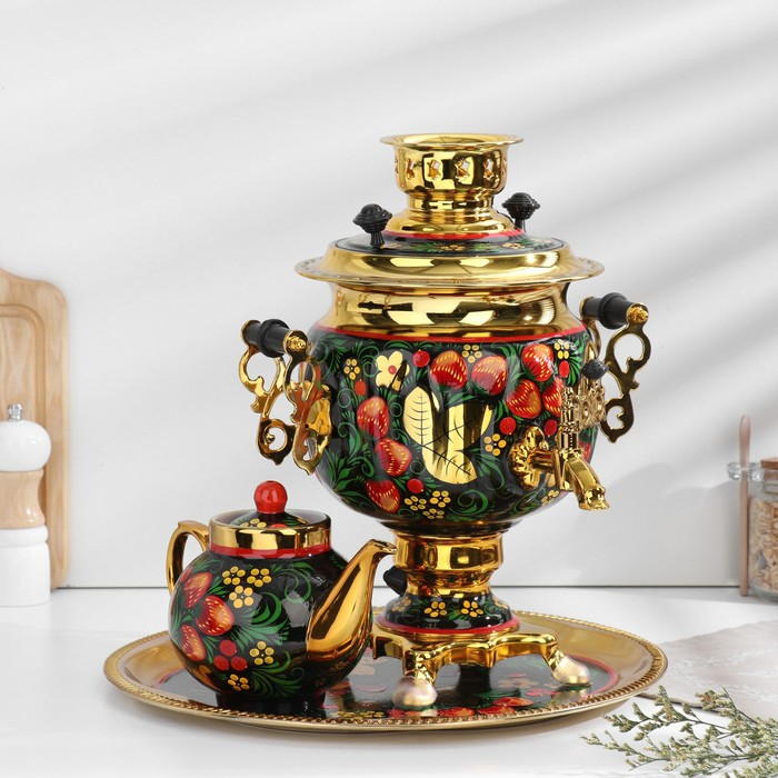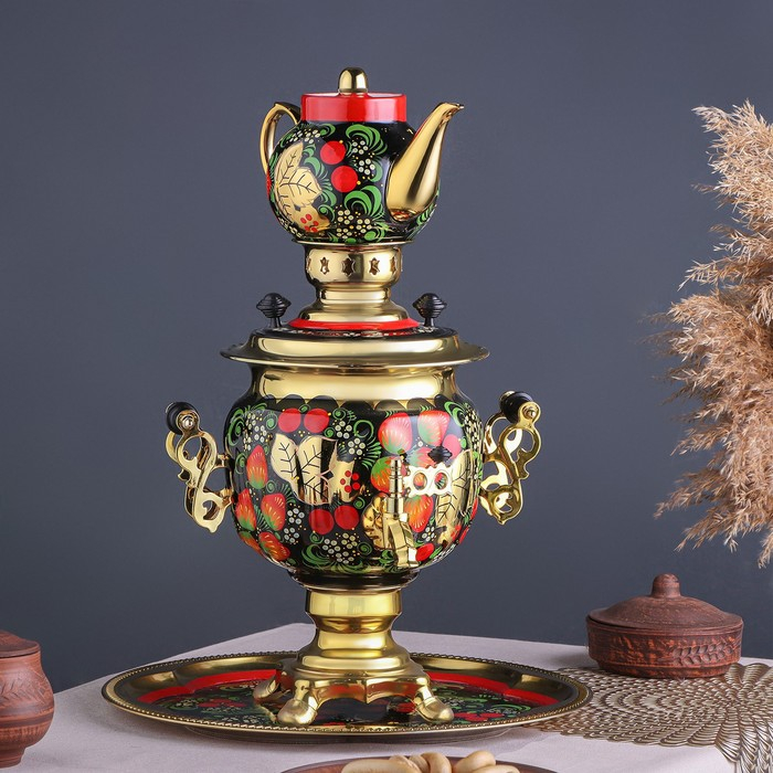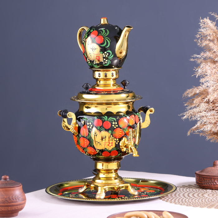 Набор «Хохлома», овал, 3 предмета, самовар 3 л, заварочный чайник 0,7 л, поднос