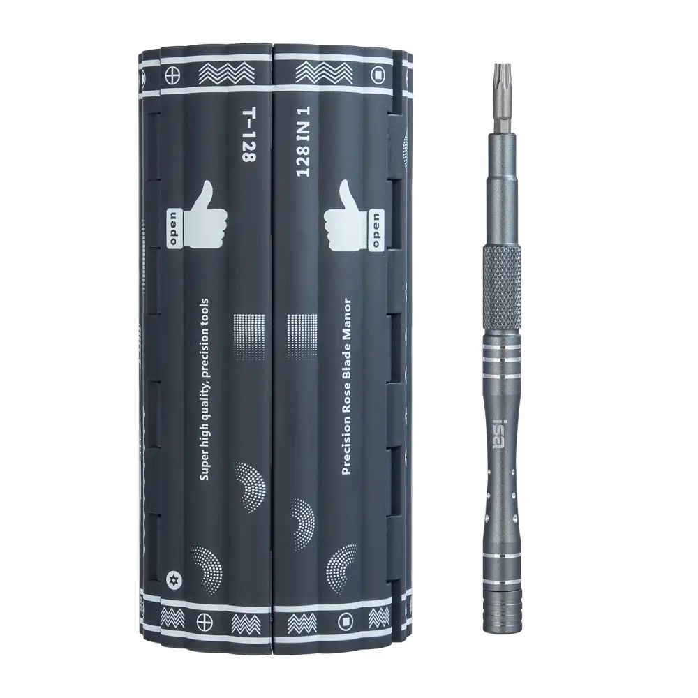 В набор входит 122 высокоточных бит. 6 предметов для монтажа: Стальной пинцет - 1 шт; Стальной инструмент - 1 шт; Универсальный стержень - 1 шт; Металлический лом - 1 шт; Намагничиватель/размагничиватель - 1 шт; Отмычка - 6 шт; Твердость материала - 60 HRC. Антикоррозийное покрытие - да. Материал корпуса бит - металл. Вес товара