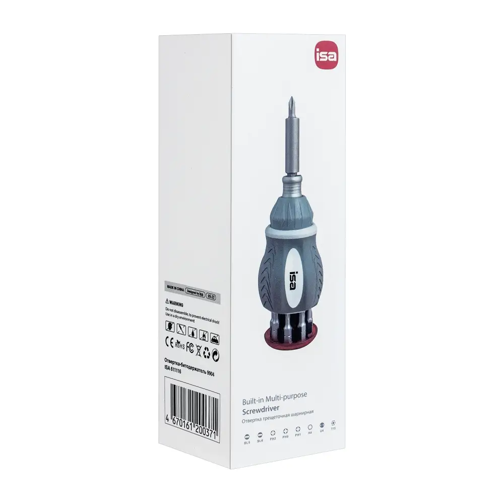 В набор входит 8 высокоточных бит расположенных внутри отвертки.