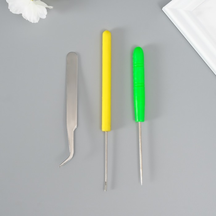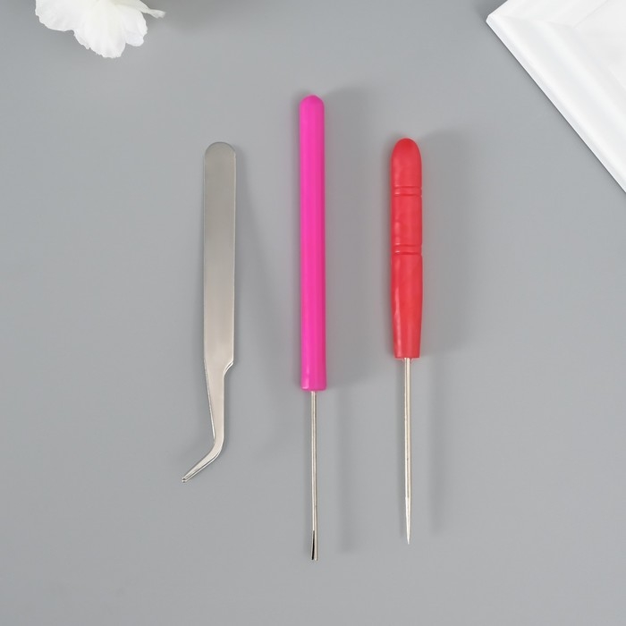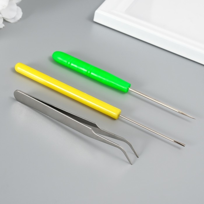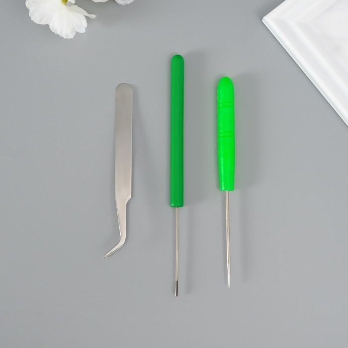 Набор инструментов для квиллинга 3 предмета: инструмент разрез 0,7 см, шило и пинцет 10 см