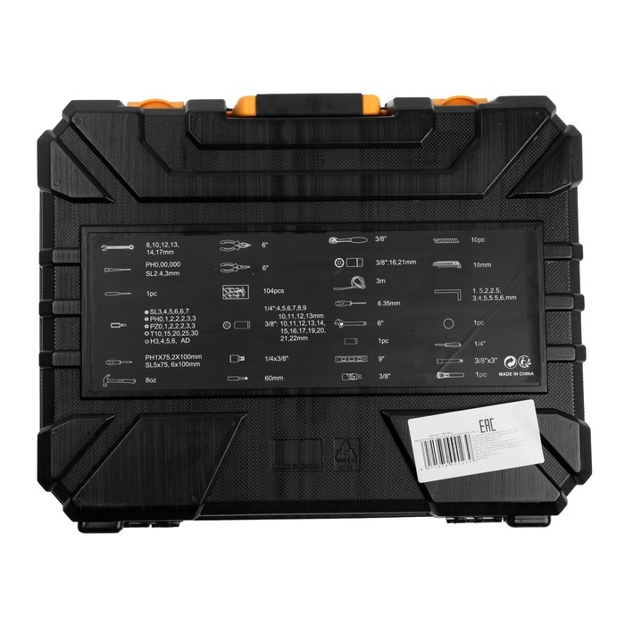 Гаечные ключи, Длинногубцы, Молоток, Нож, Плоскогубцы, Разводной ключ, Рулетка, Тестер, Торцевые головки биты, Трещотка, Уровень, Шестигранные ключи
