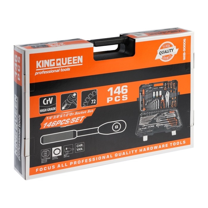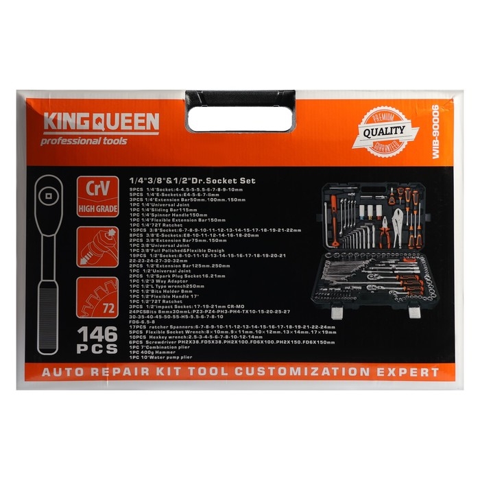 Набор инструментов универсальный KINGQUEEN WIB-90006, 72 зуба, 1/2 3/8 1/4", 146 предметов