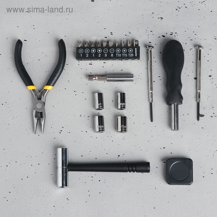 Адаптер, Биты, Длинногубцы, Молоток, Отвёртка, Переходник, Рукоять отвертки, Рулетка, Торцевая головка