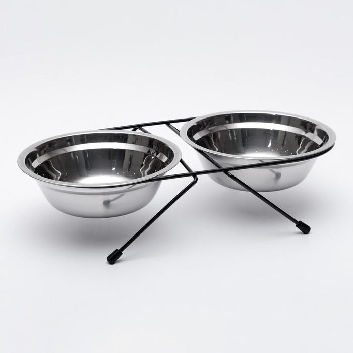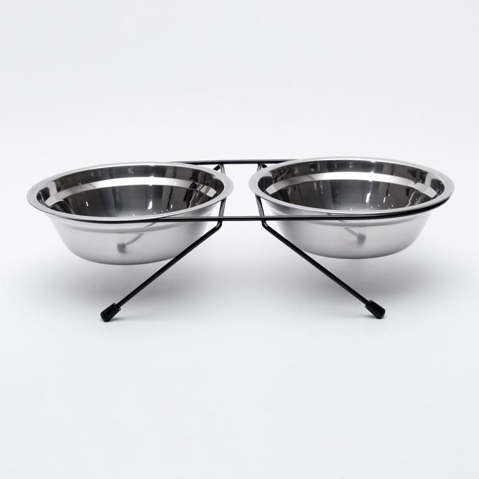 Набор из 2 мисок на подставке, 2 х 700 мл, чёрная подставка