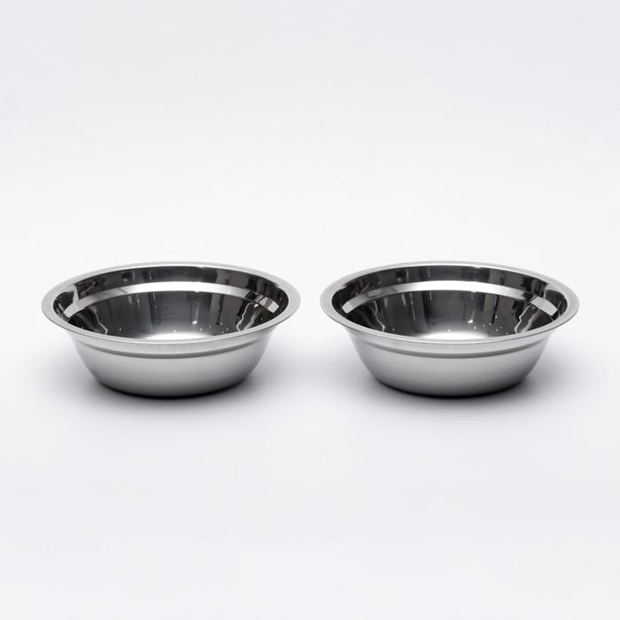 Набор из двух мисок изготовленных из высококачественной нержавеющей стали, которые предназначены для использования при кормлении домашних животных.