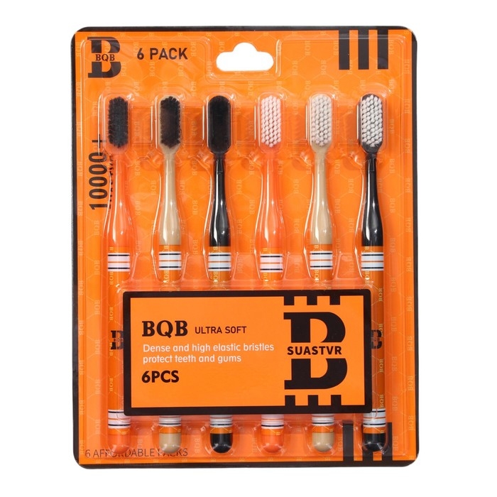 Набор из 6 зубных щеток,10000 щетинок, ораньжевые, жесткость мягкая