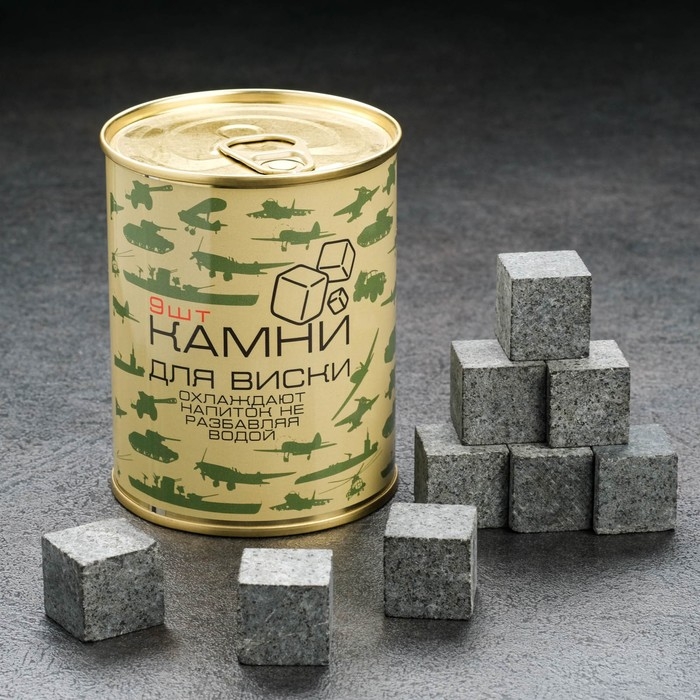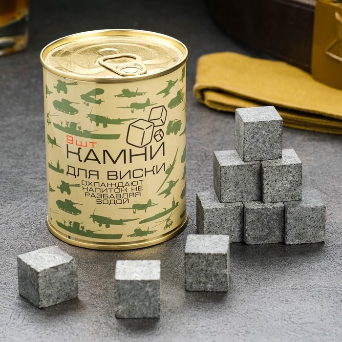 Набор камней для виски "Настоящему мужчине. Бочка", в консервной банке, 9 шт.
