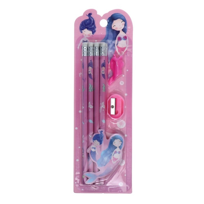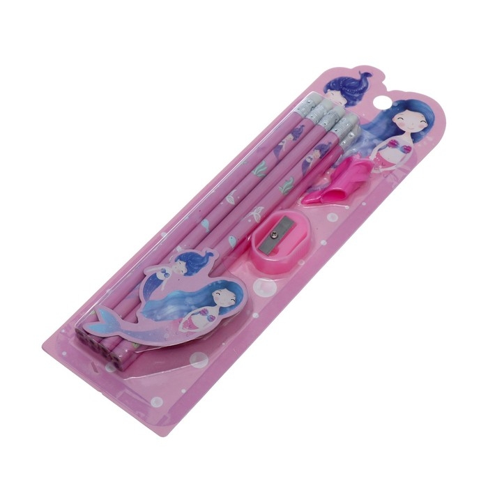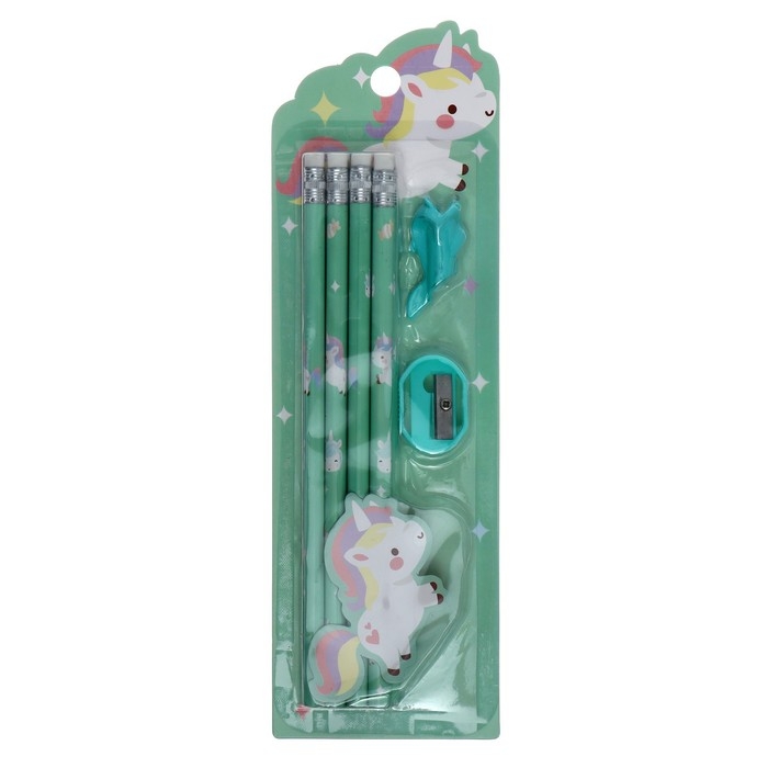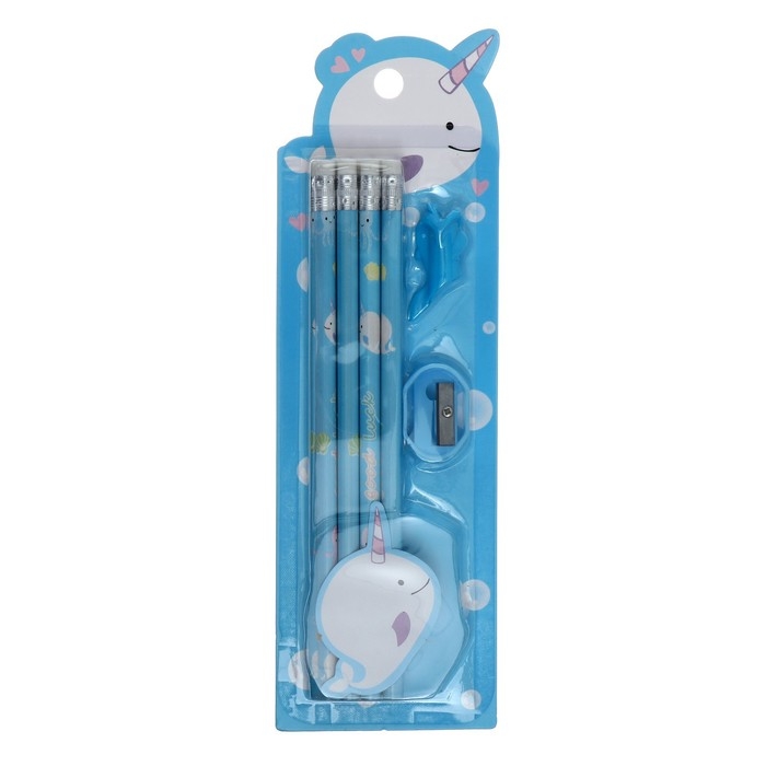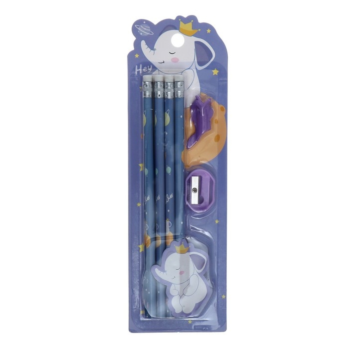 Набор канцелярский, 8 чернографитных карандашей, точилка, насадка для исправления техники письма, МИКС