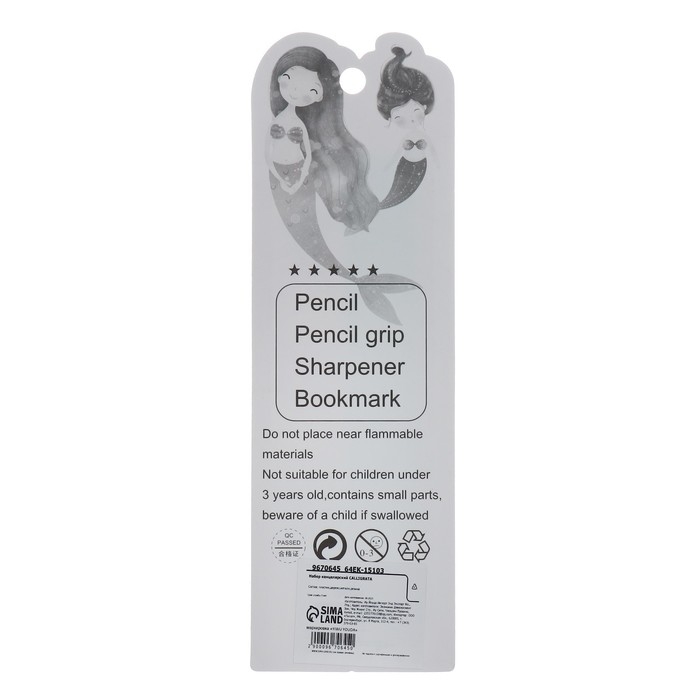 Набор канцелярский, 2 чернографитных карандаша, 2 насадки-тренажера для исправления техники письма, МИКС