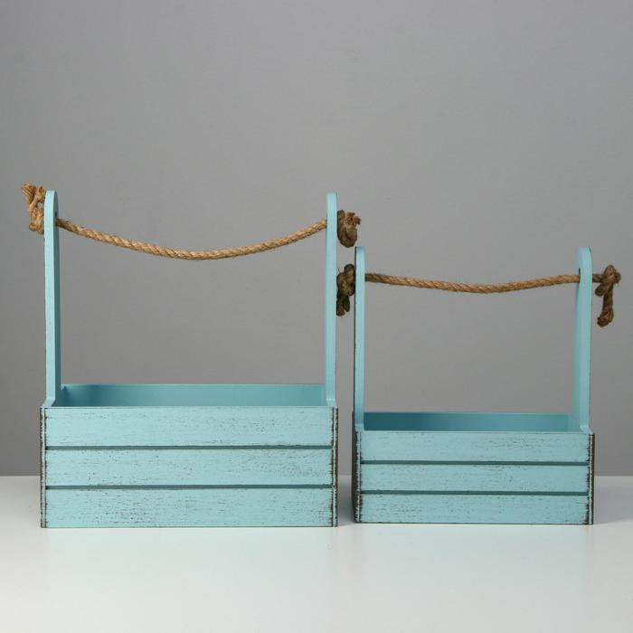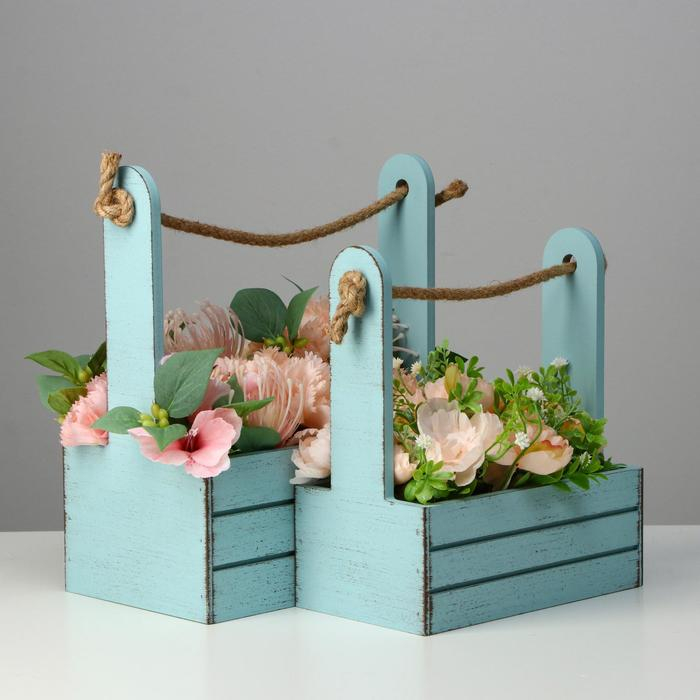 Набор кашпо деревянных 2 в 1 (25.5×15×30; 20×12×23) "Прованс", серо-голубой