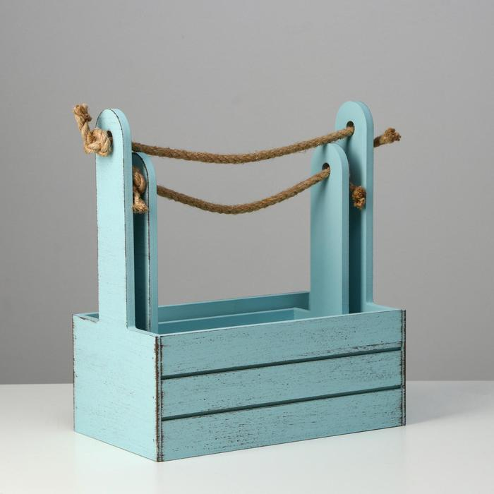 Кашпо деревянное 24.5×13.5×9 см "Двушка Лайт", двухреечное, голубой Дарим Красиво