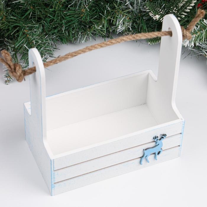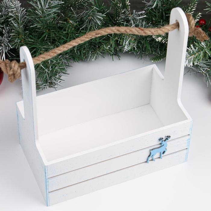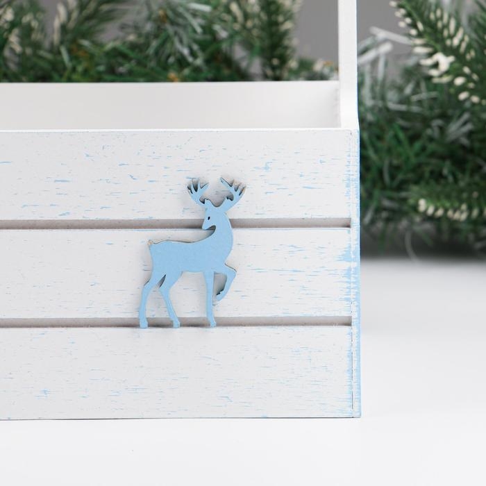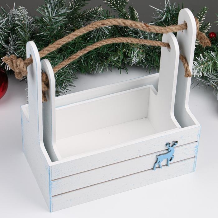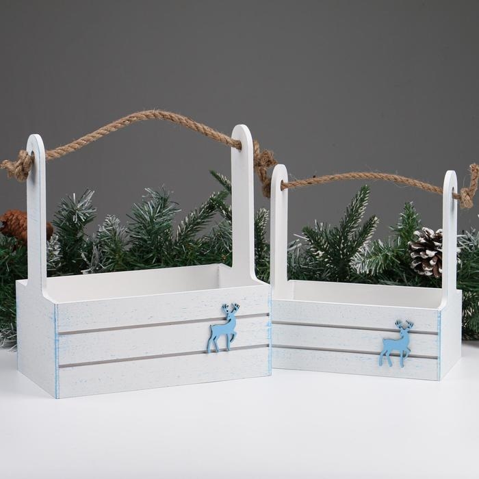 Набор кашпо деревянных 2 в1 "Новый год.Олень", (25х15х30;21х12х23), ручка канат, белый