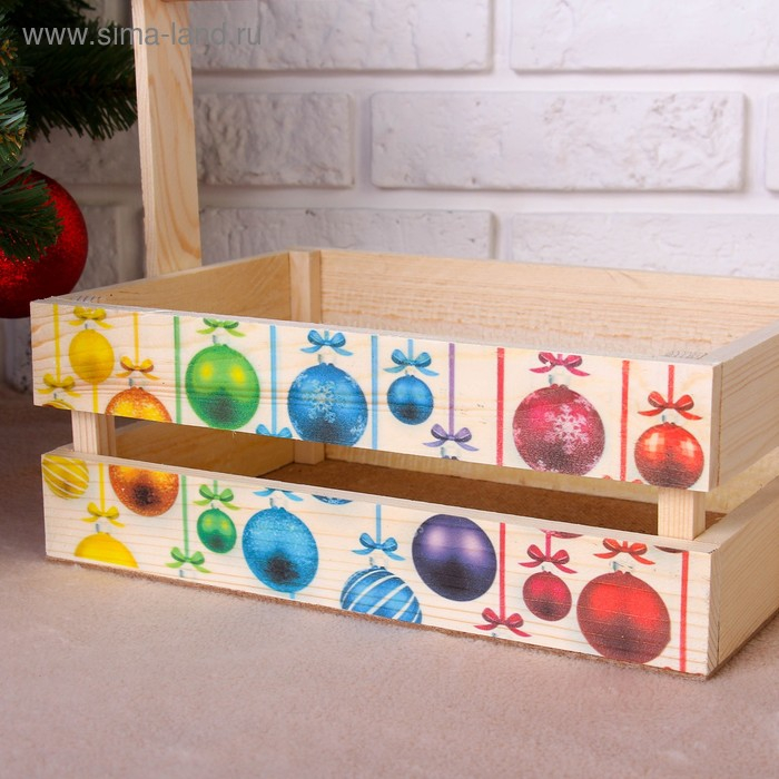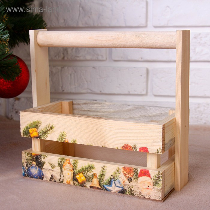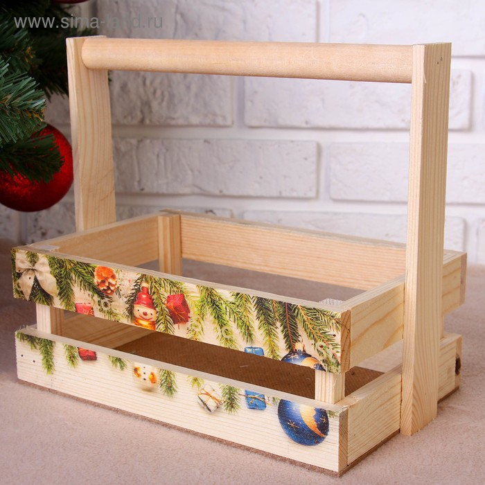 Кашпо деревянное, 23×10×14 см "Новогоднее. Санки", подарочная упаковка, белое