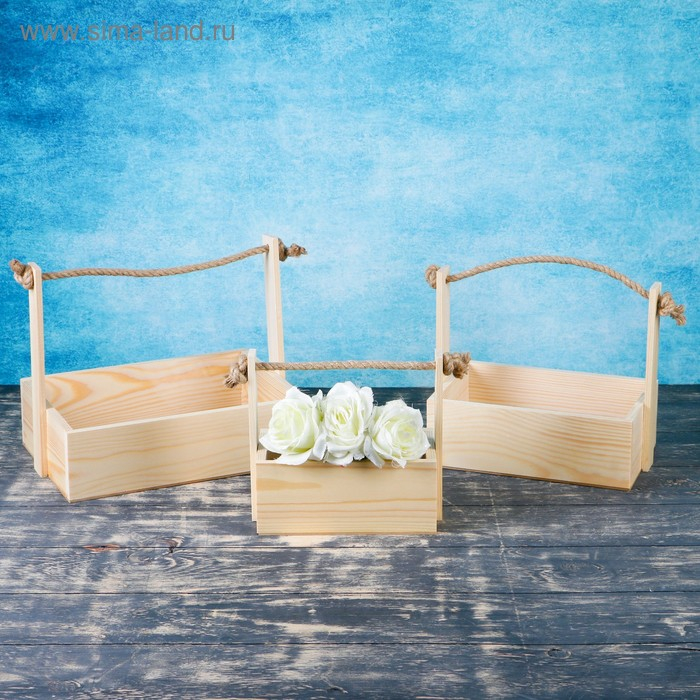 Набор кашпо деревянных подарочных Элегант "Классик", 3 в 1, ручка верёвка Дарим Красиво