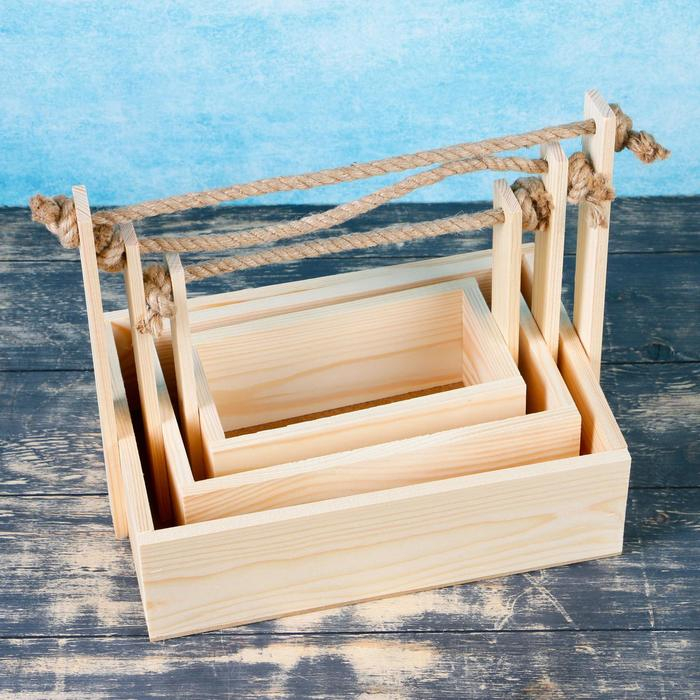 Набор кашпо деревянных 3 в 1 (30.5×18.5×35; 25.5×15×30; 20×12×23) "Аром", обожженный