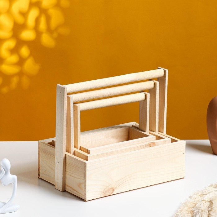 Набор кашпо деревянных подарочных Элегант "Классик", 3 в 1, с ручкой, натуральный