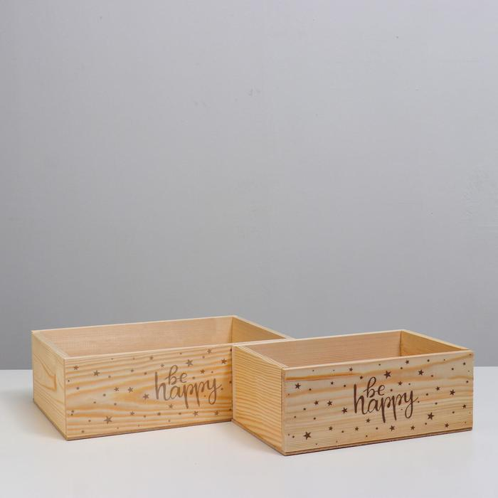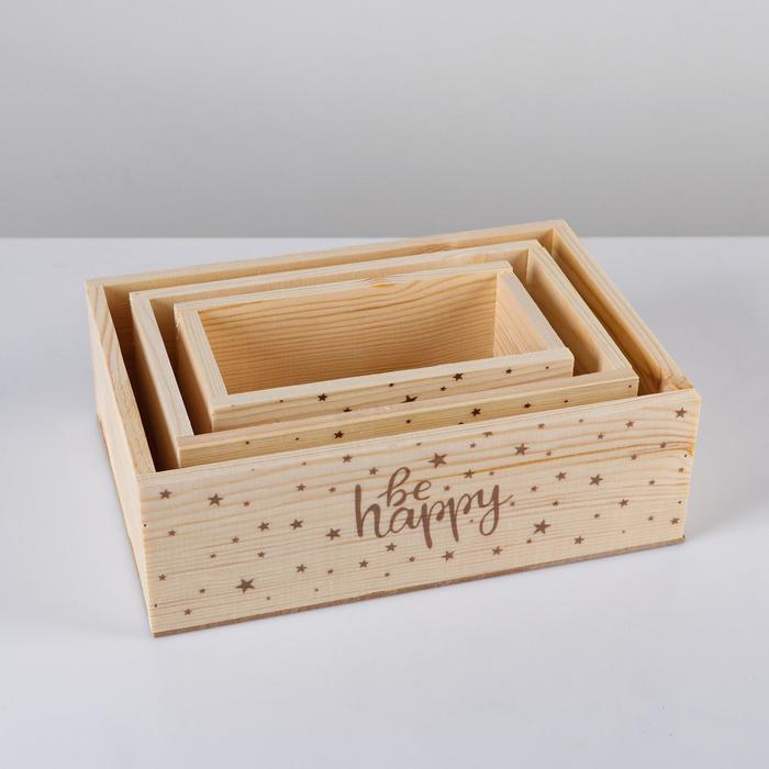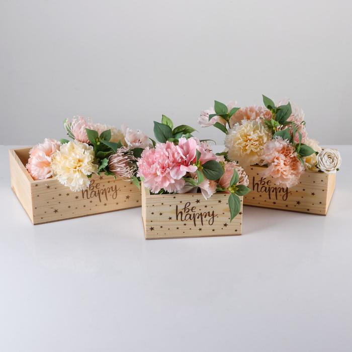 Набор кашпо деревянных ящиков, 30×25×20 см "Be happy", 3 в 1, гравировка