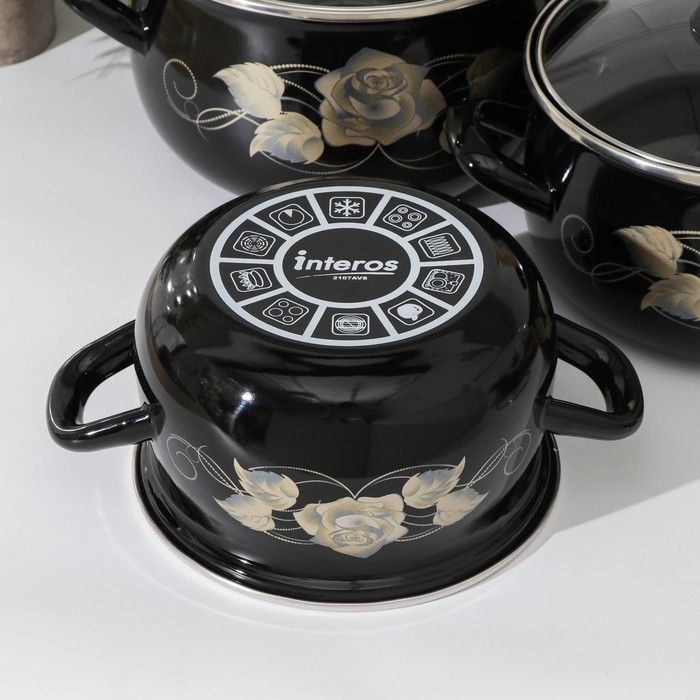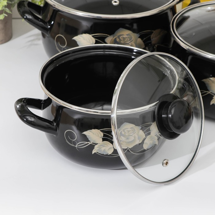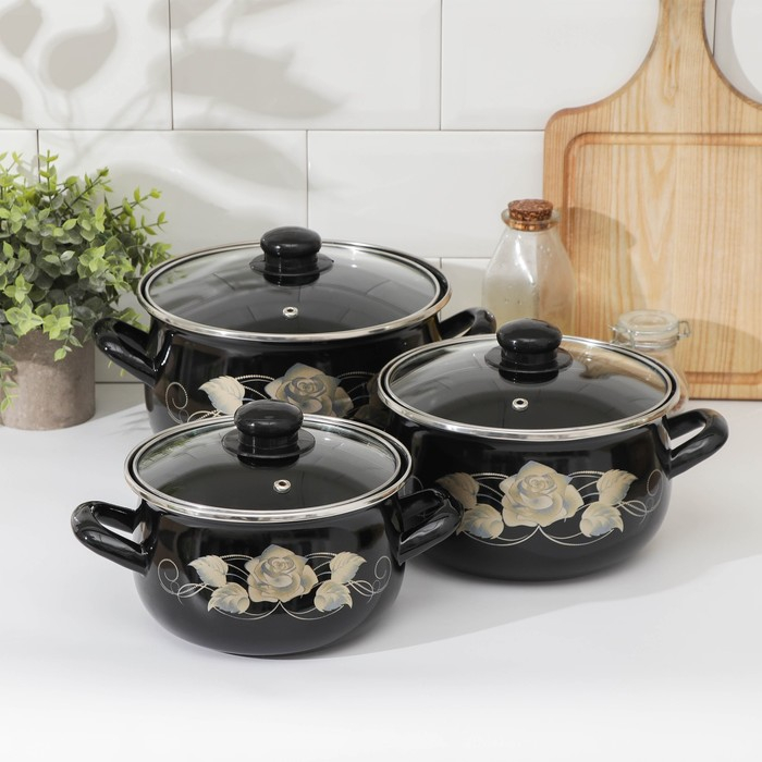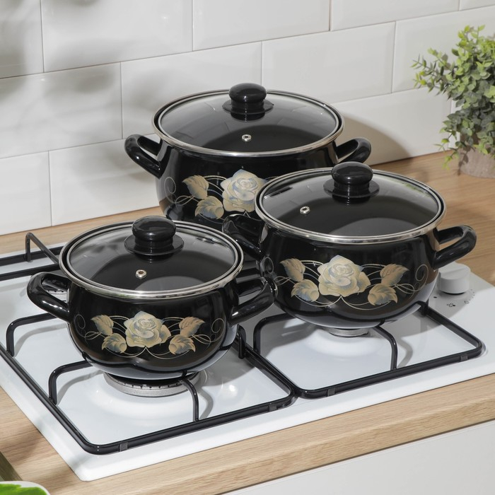 Набор кастрюль «Чёрное золото», 3 предмета: 2,1 л, 3,1 л, 4 л, крышки, индукция, цвет чёрный