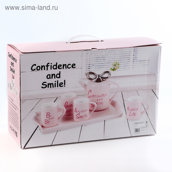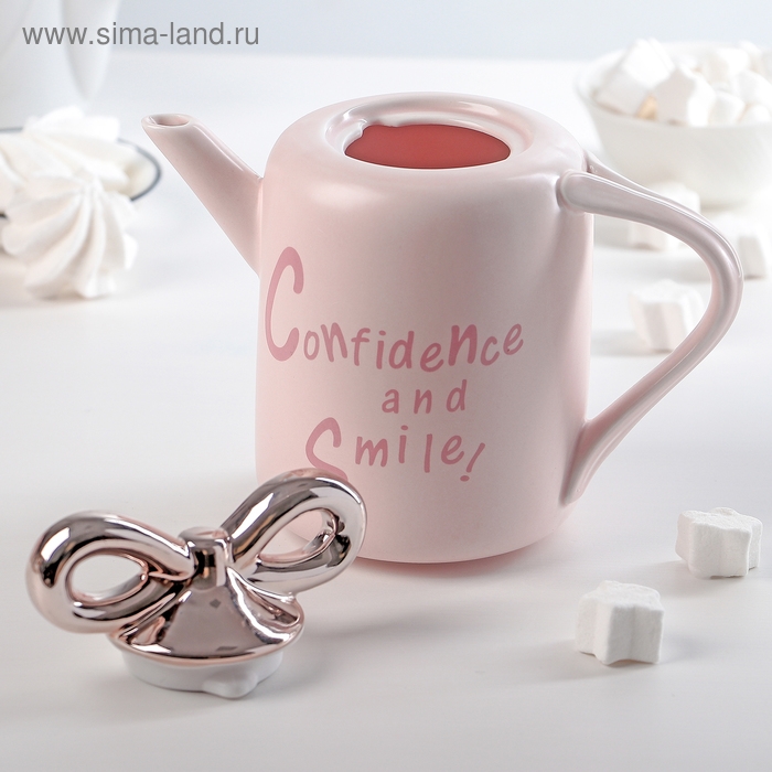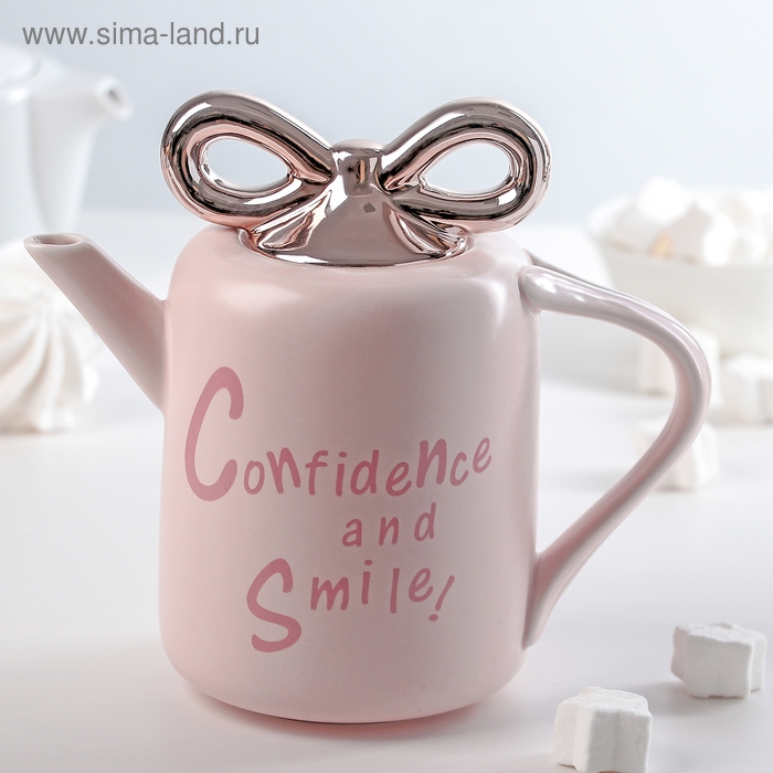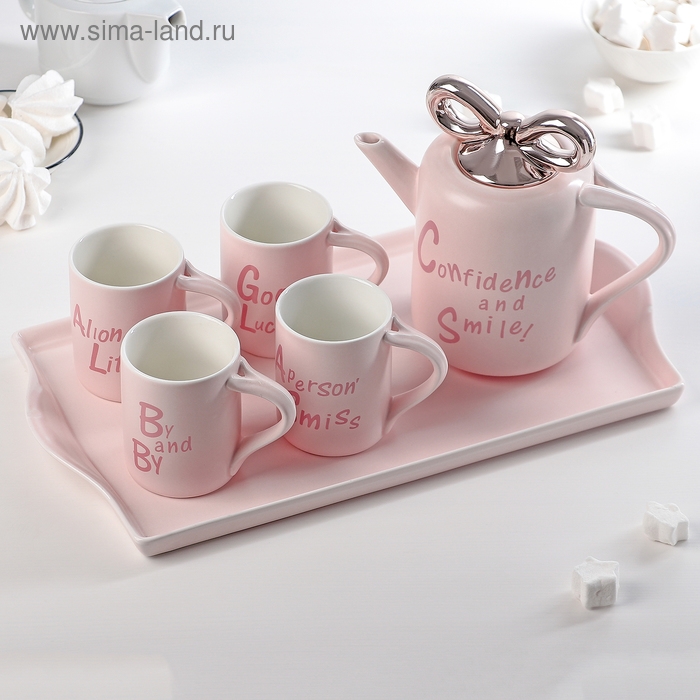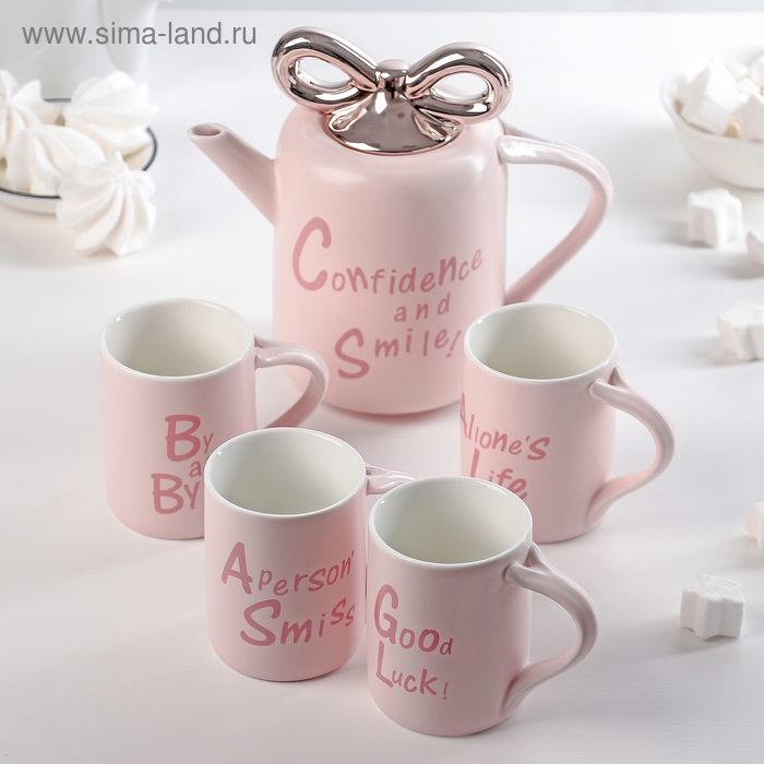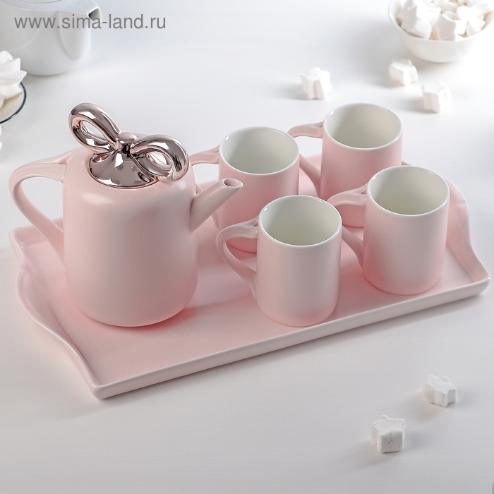 Набор керамический чайный на подставке «Бант», 5 предметов: чайник 900 мл, 4 кружки 200 мл