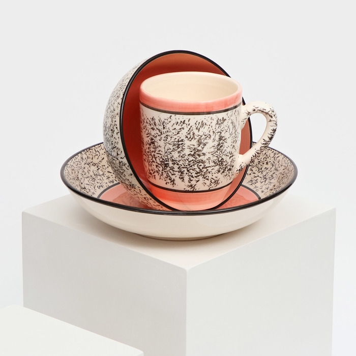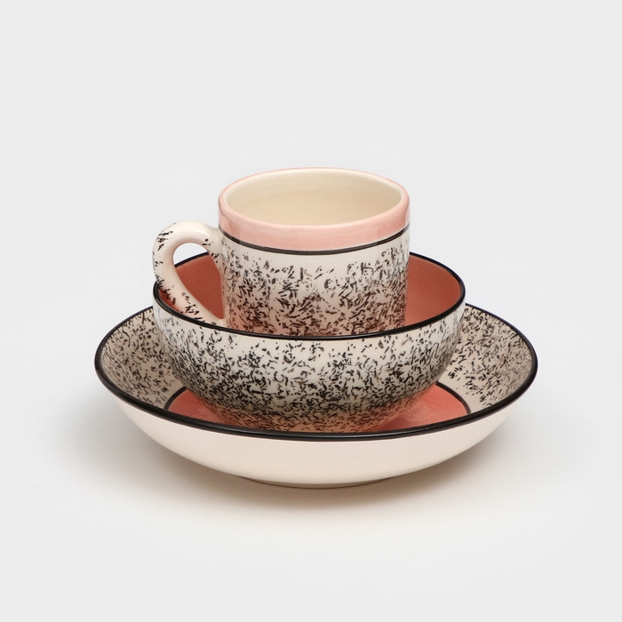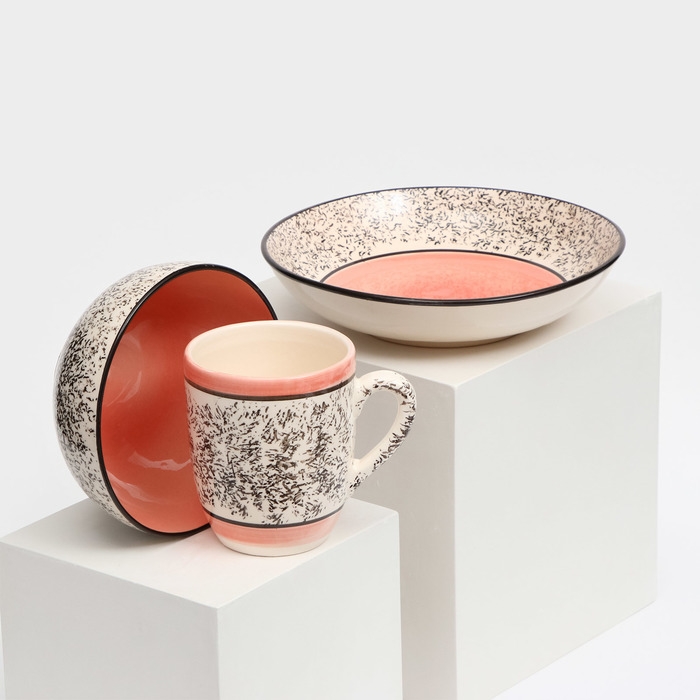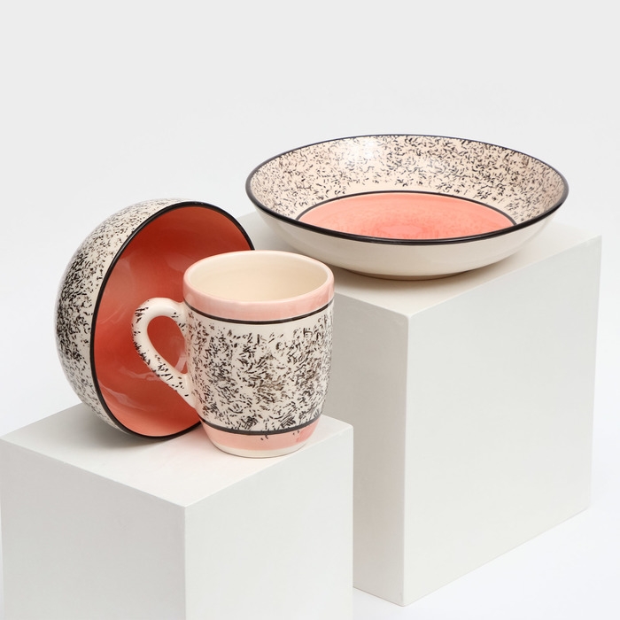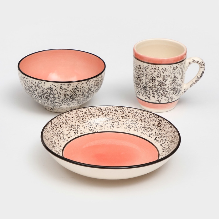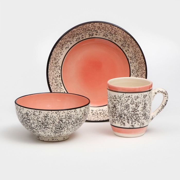Набор керамической посуды «Алладин», 3 предмета: салатник 700 мл, тарелка 20 см, кружка 350 мл, розовый, 1 сорт, Иран