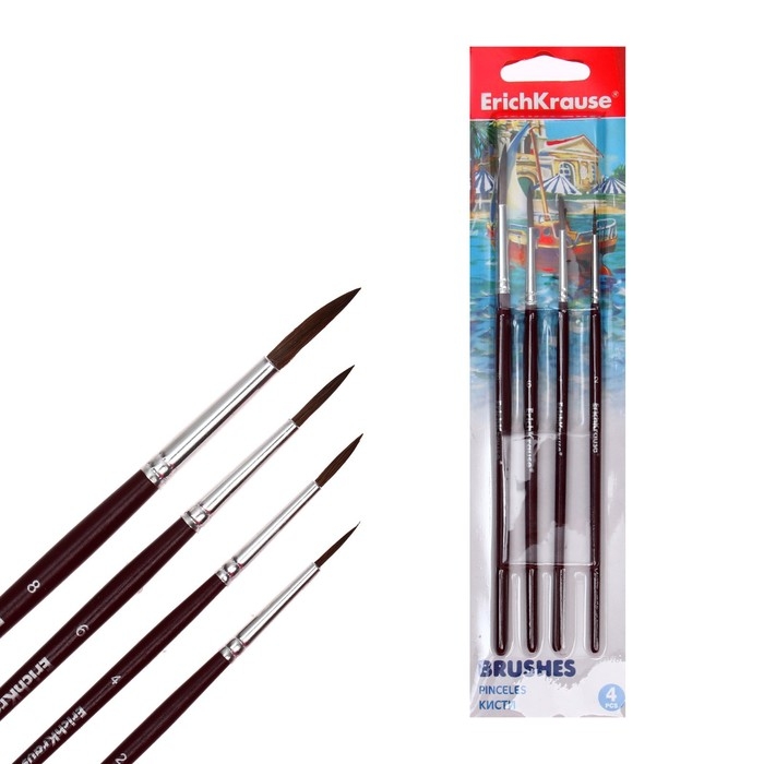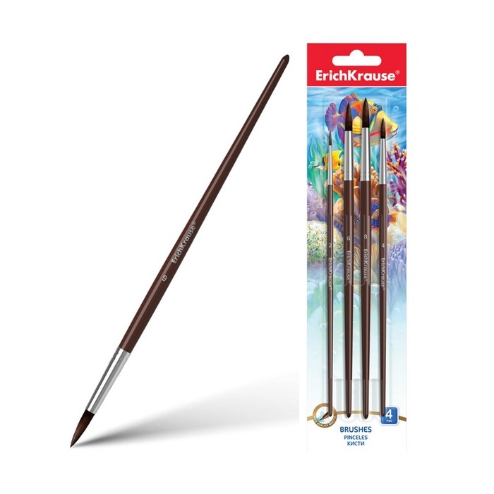 Набор кистей Пони 4 штуки Erich Krause, круглые № 2, 4, 6, 8, в блистере