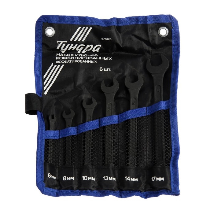 Набор ключей комбинированных в сумке ТУНДРА, фосфатированные, 6 - 17 мм, 6 шт.
