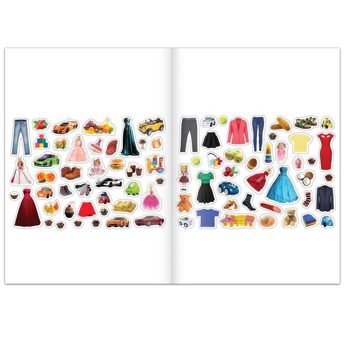 В каждом альбоме представлено 250 наклеек с красочными изображениями игрушек, растений, фруктов, одежды и других важных предметов окружающего мира. Яркие картинки положительно влияют на визуальное восприятие малыша, память и воображение.