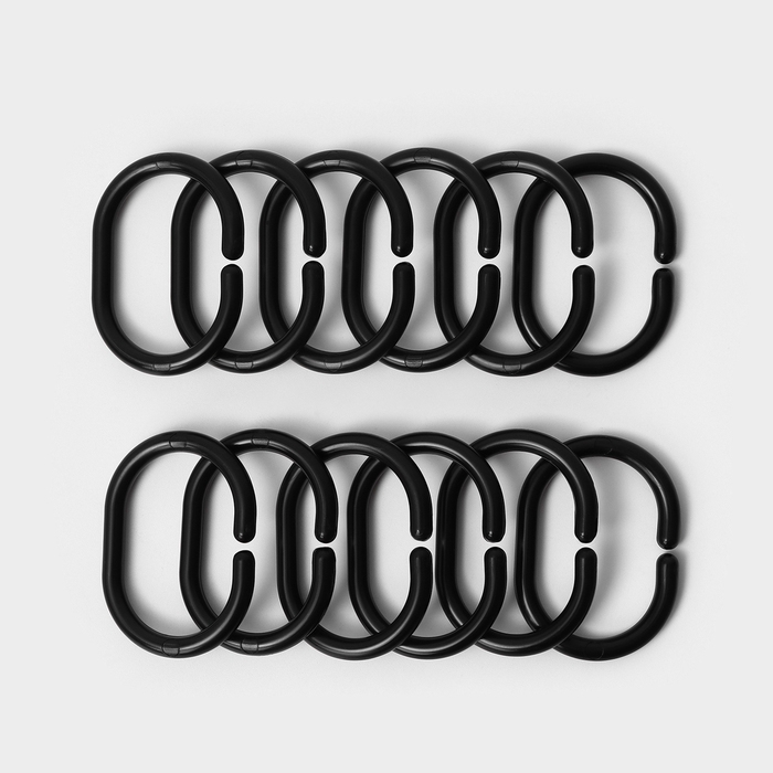 Набор колец для штор в ванную, пластик, 12 шт, цвет черный