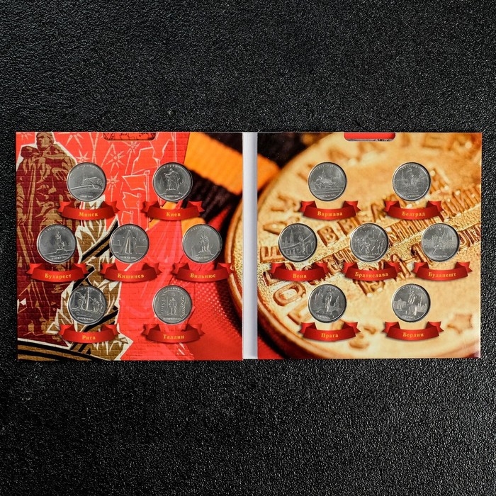 В наборе 14 монет 5 рублей 2016 года ММД серии "Города - столицы государств, освобожденные советскими войсками от немецко-фашистских захватчиков".