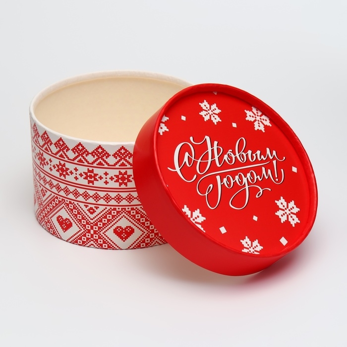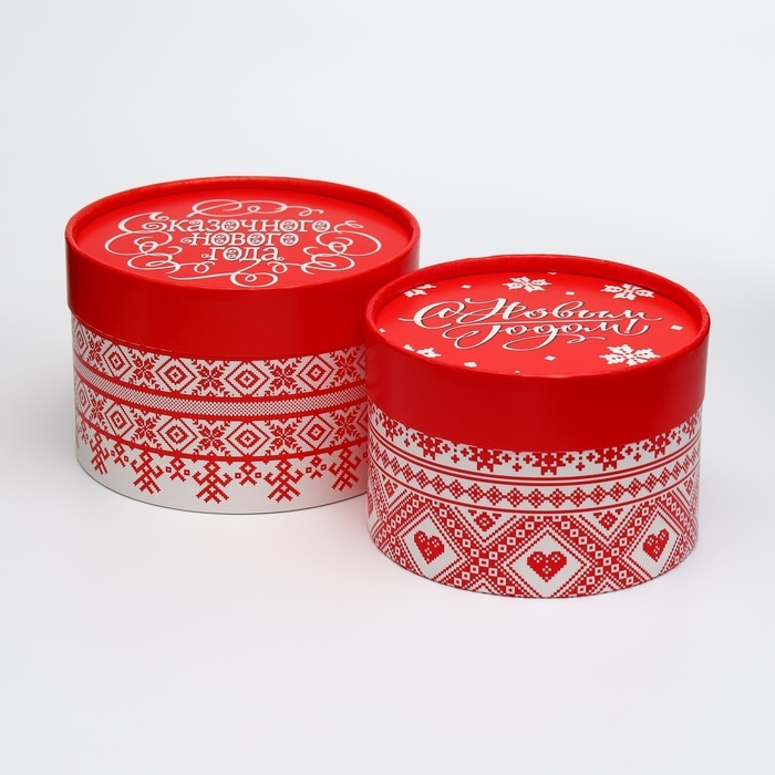 Новогодний набор круглых коробок 2 в 1 — это стильное и праздничное решение для упаковки подарков.